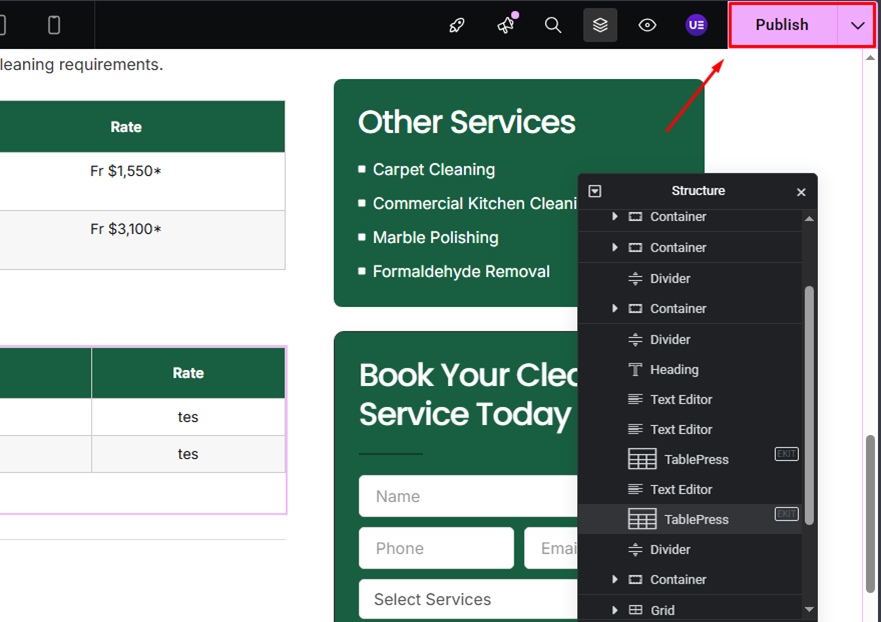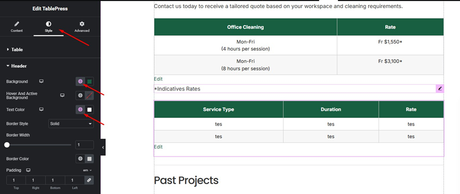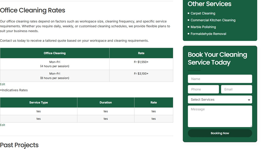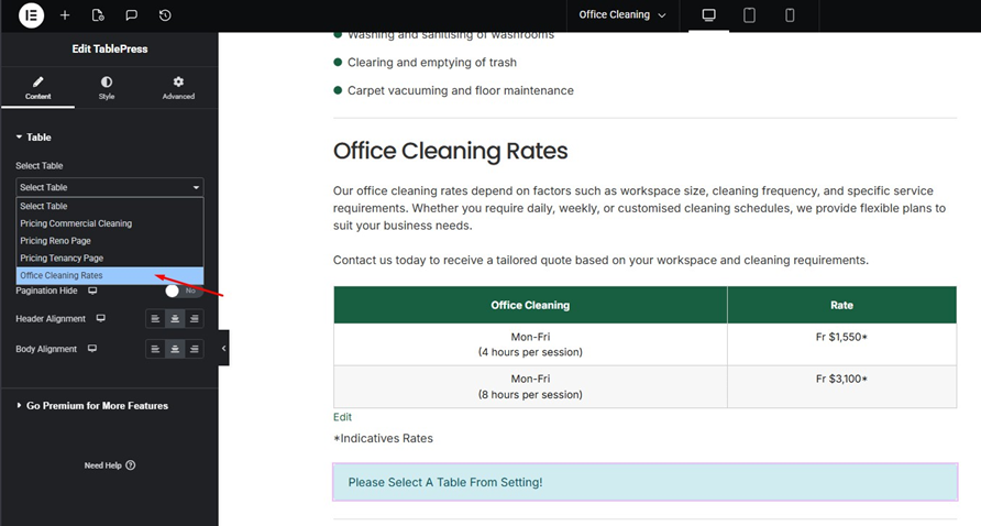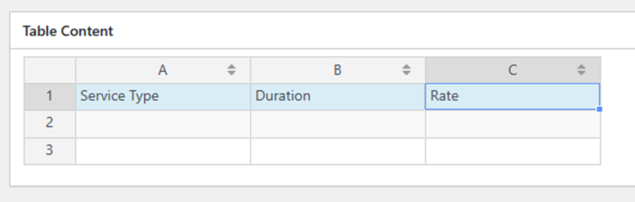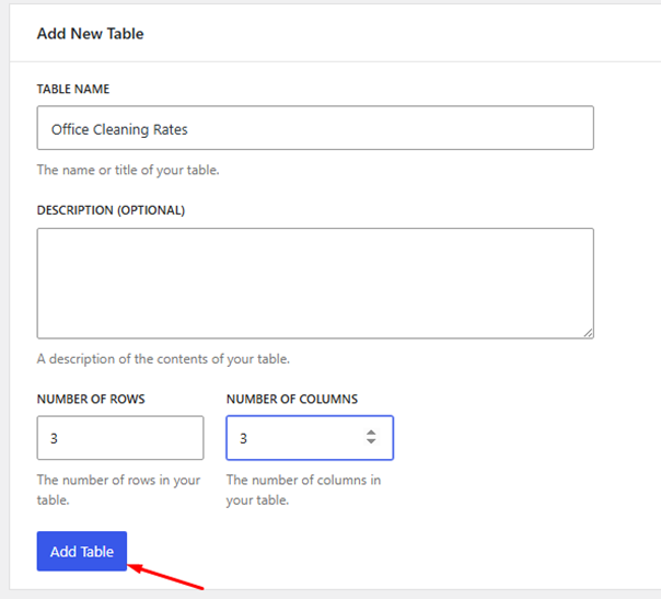 - Enter a Table Name (e.g., Office Cleaning Rates)